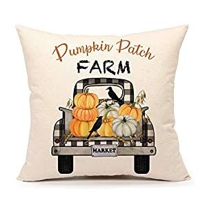 4TH Emotion Fall Pumpkin Patch Truck Throw Pillow Cover Autumn Farmhouse Market Cushion Case for Sofa Couch 18?18 Inches